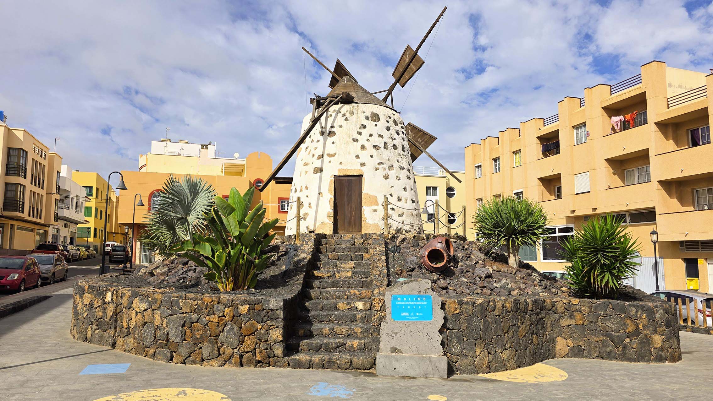 La Molina de Juan Morera est un ancien moulin traditionnel situé à Corralejo, témoin du passé agricole de Fuerteventura. Autrefois utilisé pour moudre les céréales grâce à la force du vent, il illustre l’ingéniosité des constructions rurales de l’île. Sa silhouette blanche et cylindrique se détache dans le paysage aride typique des Canaries. Aujourd’hui, il constitue un petit patrimoine local qui rappelle l’importance de l’agriculture et des traditions dans l’histoire de la région.