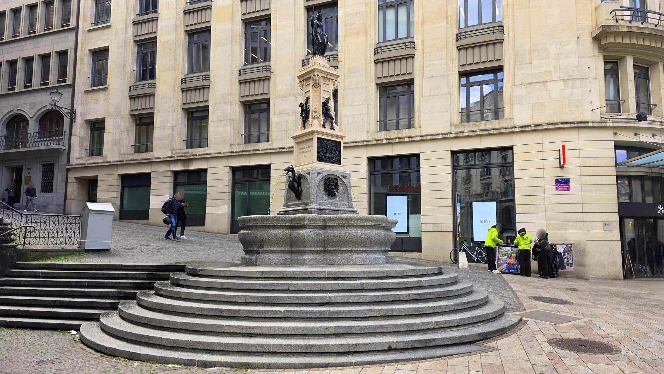 Place du Bourg-de-Four – À 120 m (2 min à pied) de la cathédrale. Plus ancienne place de Genève, ce lieu historique était déjà occupé à l’époque romaine. Aujourd’hui animée par ses cafés et restaurants, elle offre une atmosphère chaleureuse et vivante, entourée de façades anciennes et de fontaines qui renforcent son charme et son importance dans la vie locale genevoise. Temps de visite : 45 min