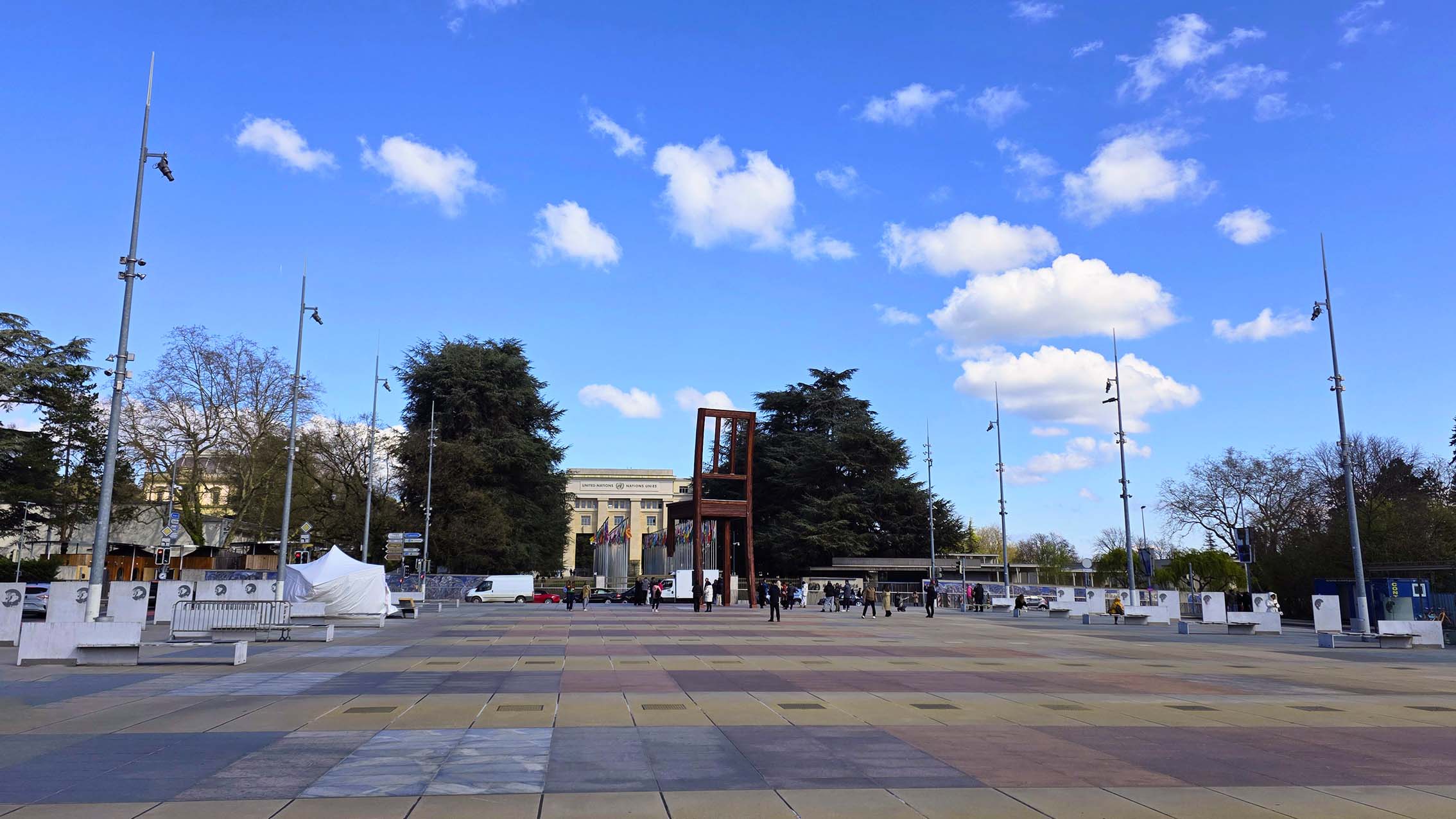 Palais des Nations & Broken Chair – À 2,5 km (30 min à pied). Centre européen de l’ONU, ce site symbolise le rôle international de Genève. La célèbre sculpture Broken Chair, située sur la place des Nations, rend hommage aux victimes des conflits et constitue un repère visuel fort. Temps de visite : 1h30