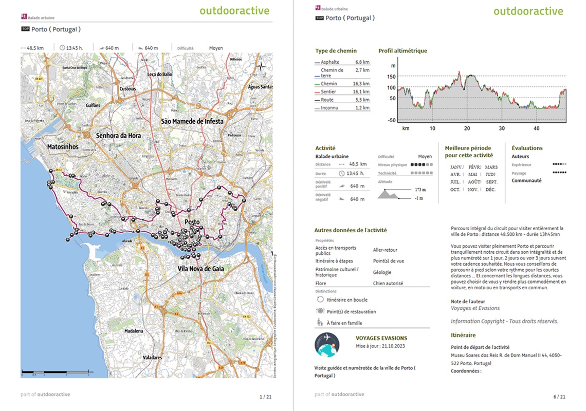 Suivez-nous sur les RÉSEAUX SOCIAUX pour découvrir des photos et vidéos exclusives de Porto. Parcourez notre itinéraire numéroté et commenté à votre rythme, sur 1, 2 ou 3 jours, selon votre préférence. Vous pouvez aussi choisir de visiter uniquement certains points d’intérêt, sans suivre tout le parcours. Le circuit total s’étend sur une distance de 48,700 km avec un temps de parcours estimé à 13h50mn, mais vous pouvez l’adapter à vos envies. Pour les courtes distances, privilégiez la marche pour une expérience plus agréable. Pour les longues distances, optez pour la voiture, la moto ou les transports en commun. Explorez Porto à votre propre rythme et selon vos envies !